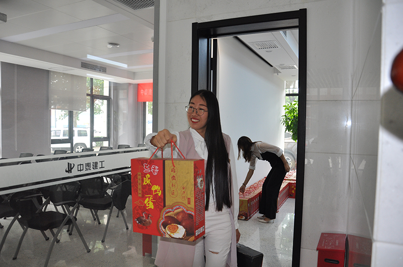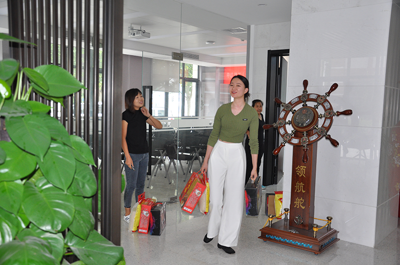 百余份载满祝福的中秋礼盒陆续被发放到每个员工手中,发放现场异常热闹,每一位员工脸上都洋溢着幸福的微笑,纷纷对公司的关怀表示感谢。