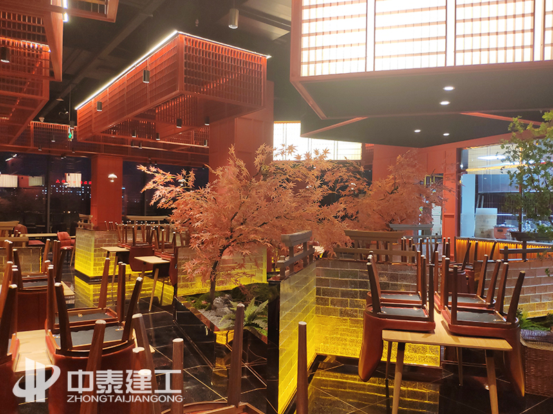 湘菜馆花艺景观及玻璃砖隔断
