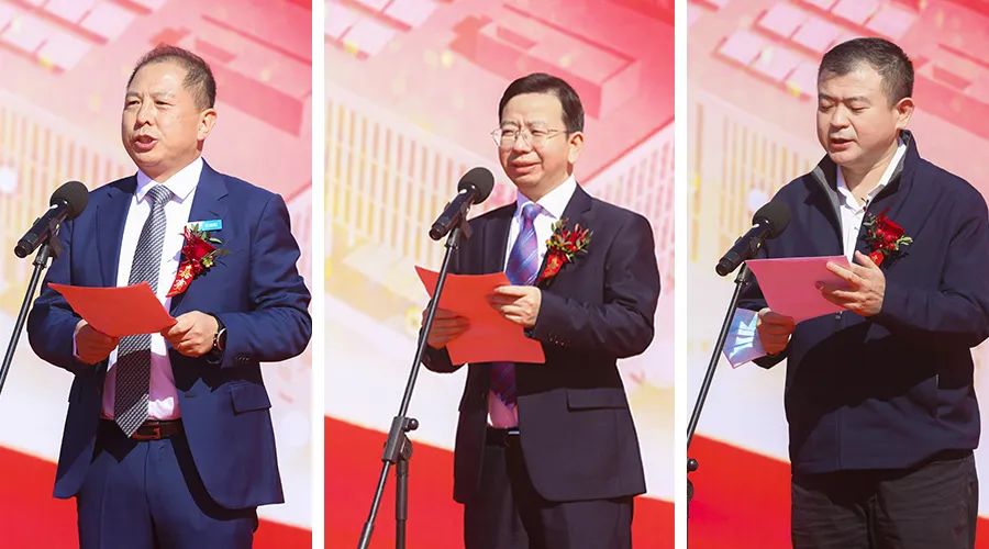 在全场热烈的掌声中,领导们受邀移步培土区,共同持楸为项目进行奠基培土。
